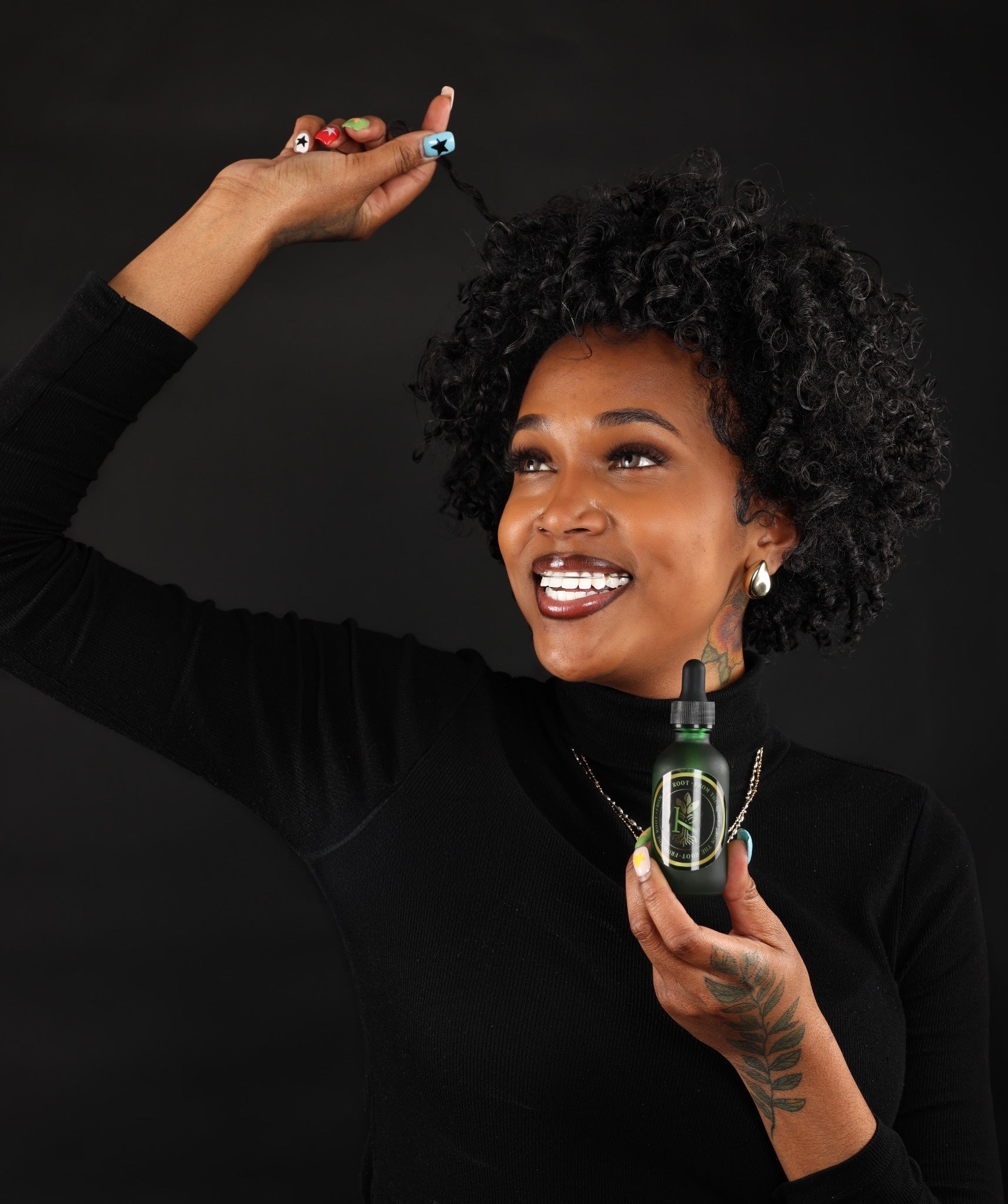 Powered by a carefully curated blend of nutrient-rich herbs, this all-natural oil strengthens each strand from root to tip. Each botanical works to nourish the scalp, reduce breakage, and support healthy, flourishing hair.